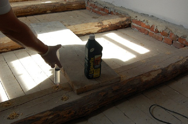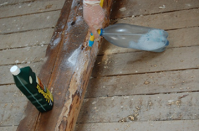 Тому першим етапом ліквідації комах-шкідників – є ін'єктаж (від слова ін'єкція). Ін'єктаж – введення розчину препарату в уражену деревину через отвори з метою глибокого просочення і створення бар'єрів для пересування личинок.
